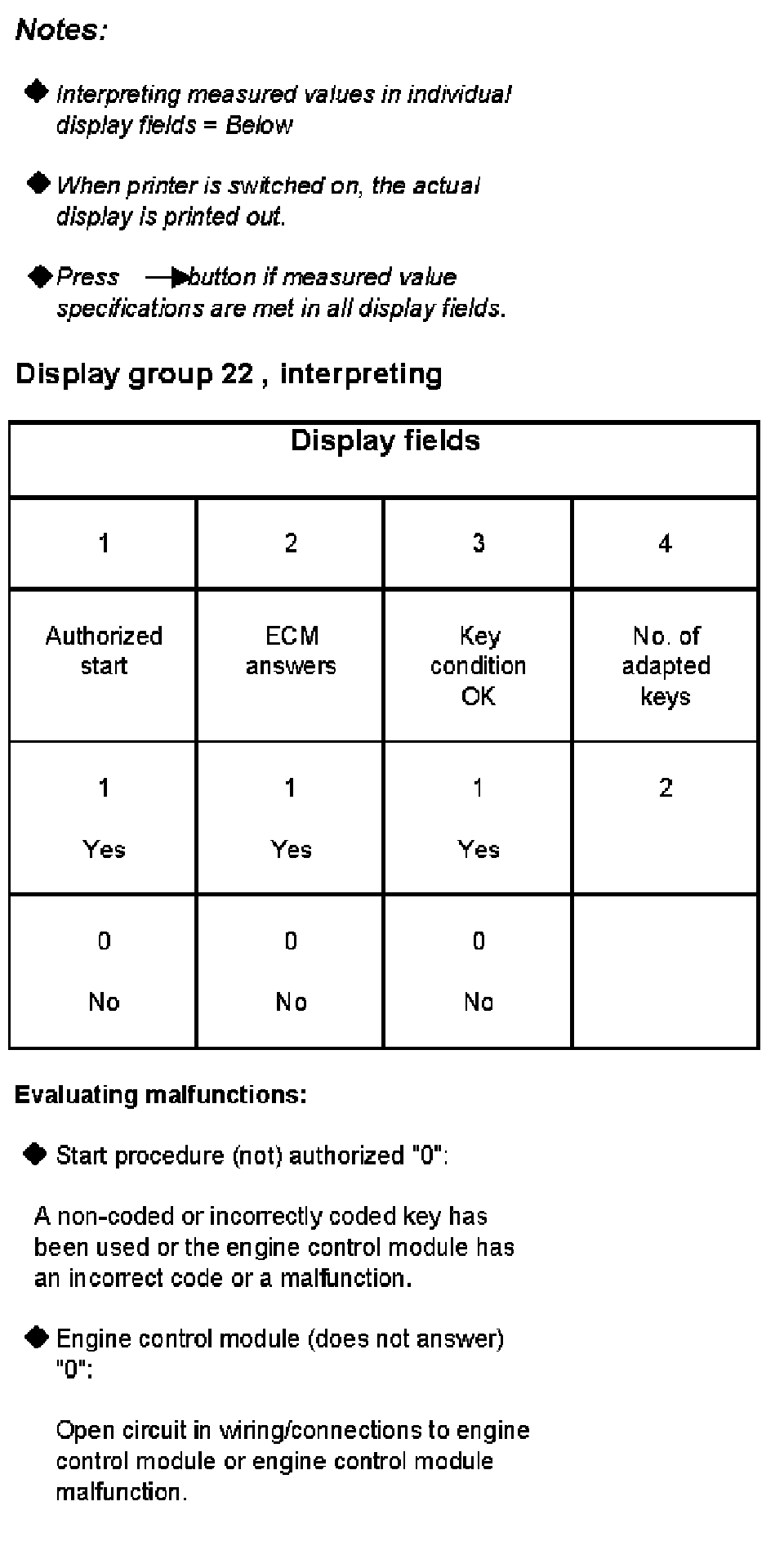 - Key status (not) OK "0"