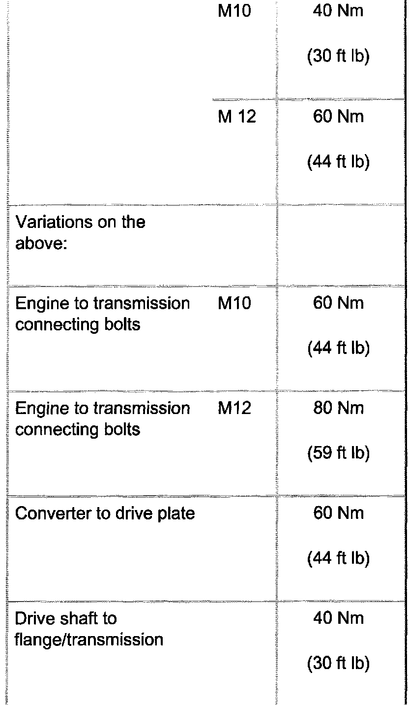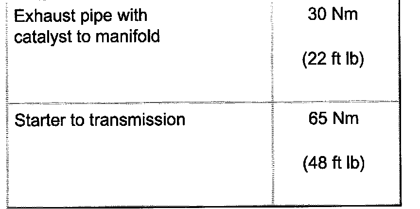Engine/transmission mounts Tightening torques