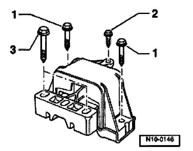 - Attach engine bracket T10012 using fastening nut and screw M10 X 25/ 8.8 with approx.