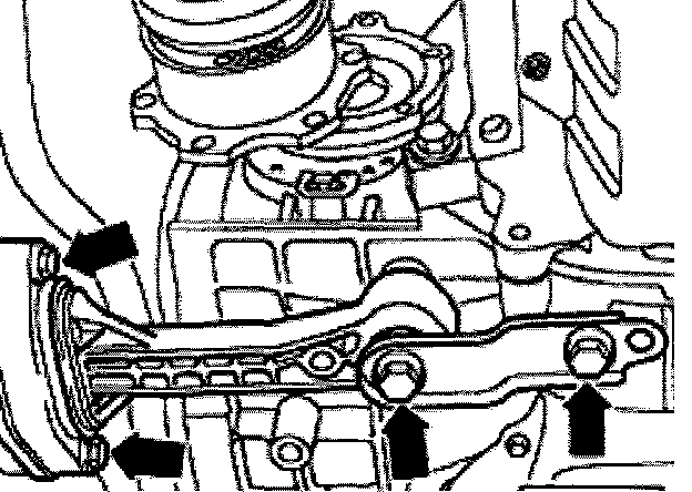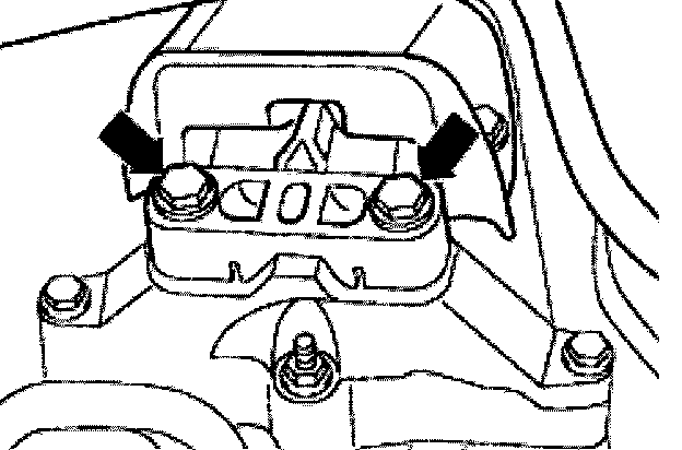 - Remove bolts (transmission side) from transmission mount (arrows) from the top.