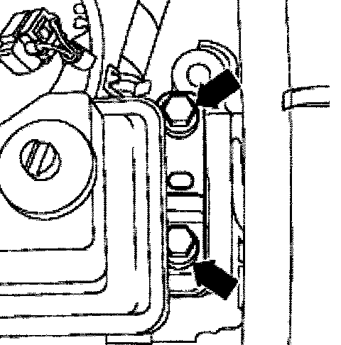 - Remove bolts (arrows) from the top (from the engine mount).