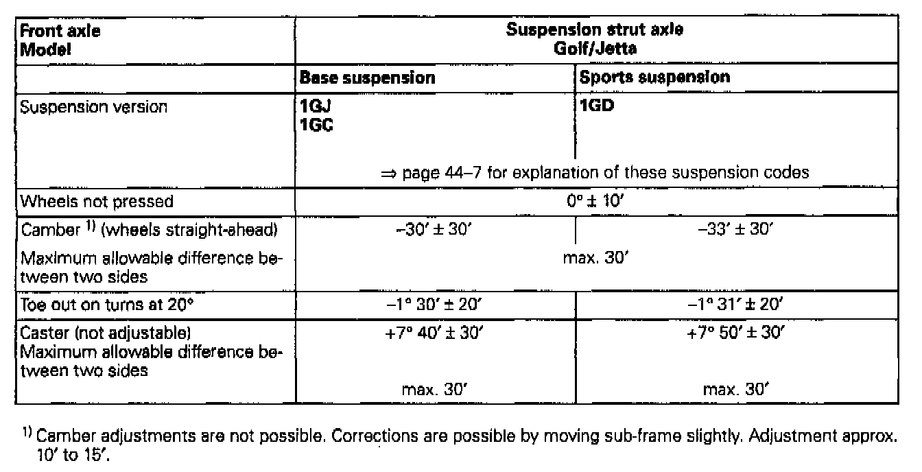 Wheel alignment specifications