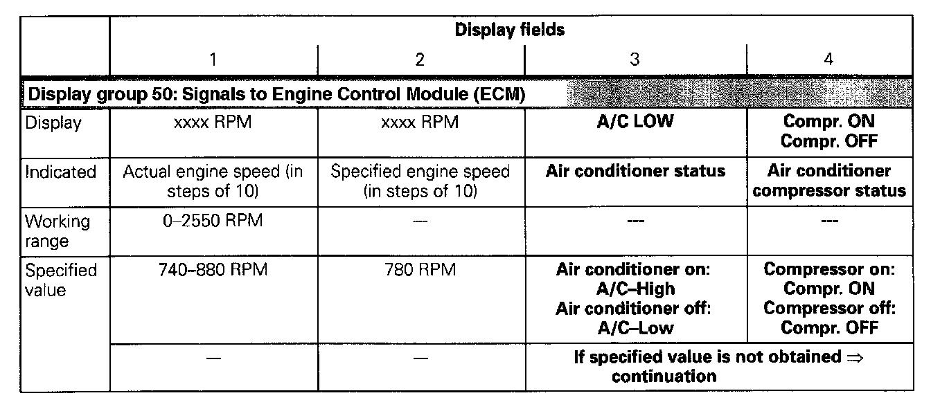 - Check specified values for air conditioner (display fields 3 and 4).