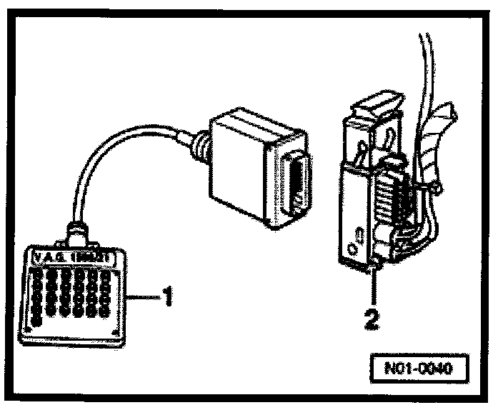 - Connect VAG 1598/21 test box -1- to ABS control module wiring harness -2-.