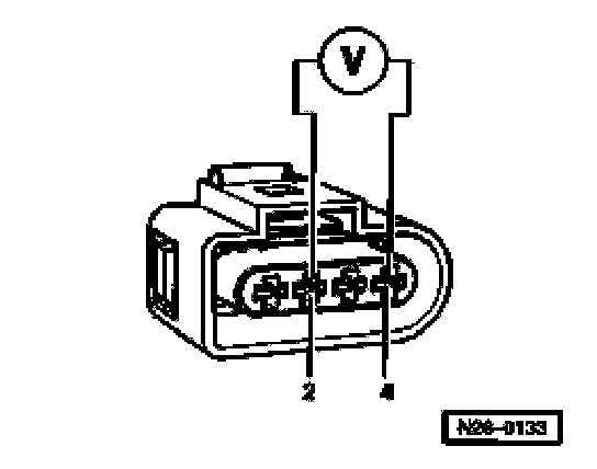 - Connect multimeter to terminals 2 + 4 of the disconnected connector for voltage measurement.