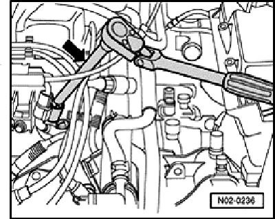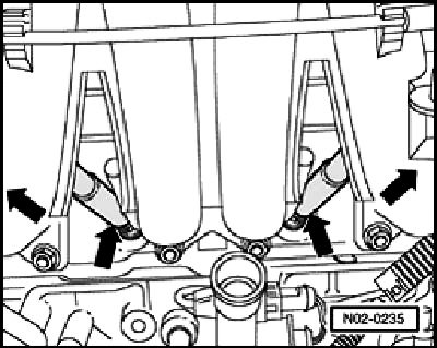 - Pull off spark plug connector -arrows- using tool T10029.