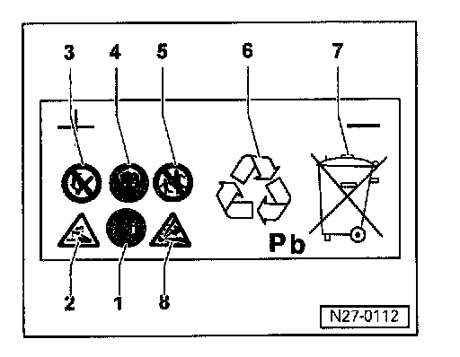 - Battery terminal clamps must only be connected by hand without force in order to prevent damage to the battery housing.