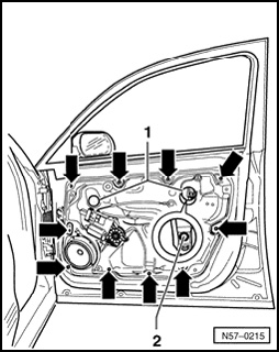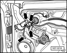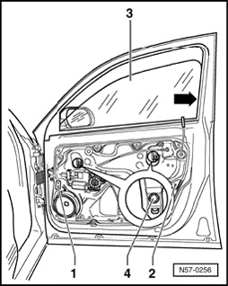 NOTE: If work step is not possible due to a malfunction via electrical window regulator, window regulator motor can be removed to be able to slide window down.