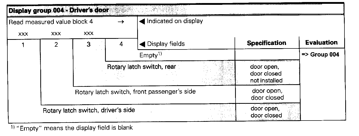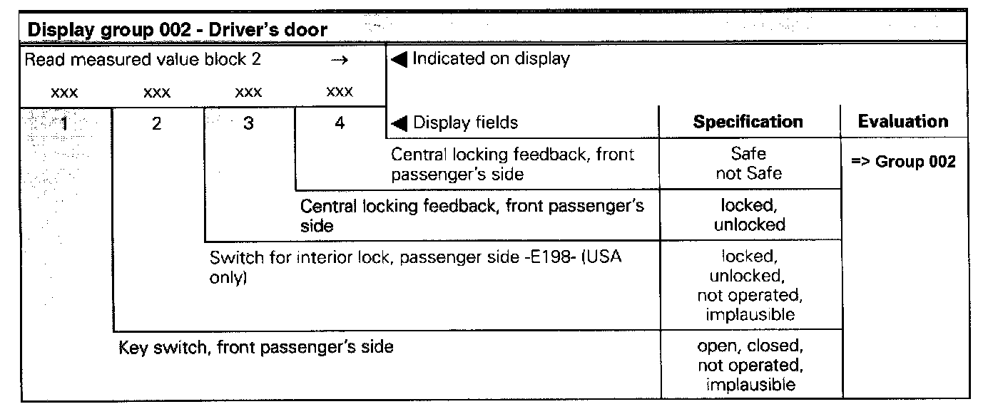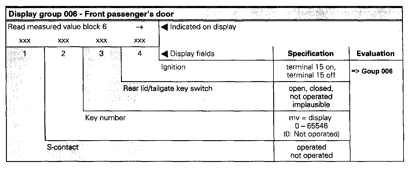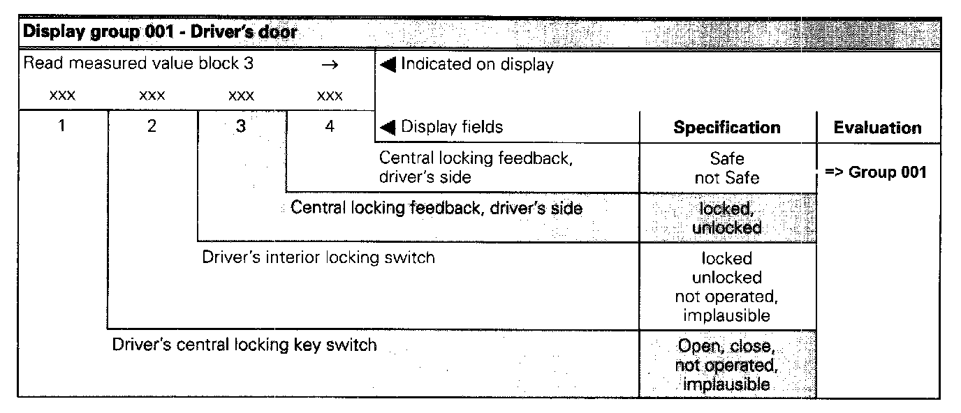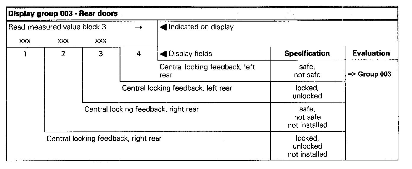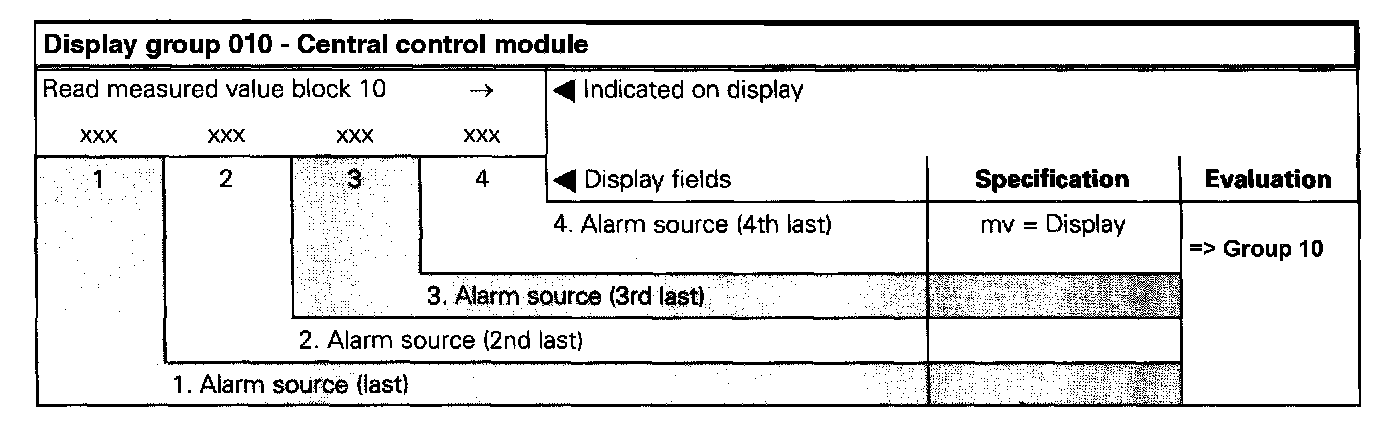 The measured value block is divided into 10 display group numbers. The assignment of the individual display zones can be taken from the display group overview. Read Measured Value Block (Function 08)