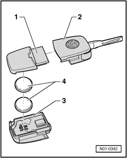 Batteries For Key With Radio Remote Control (foldable), Removing And Installing --> 04.01