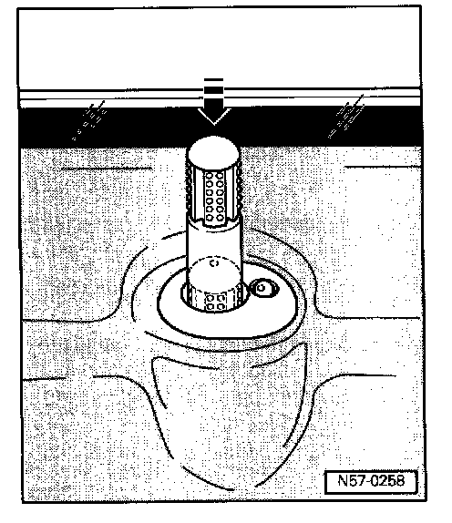 - Install locking knob onto locking rod with mark (small dot on top) toward vehicle interior.