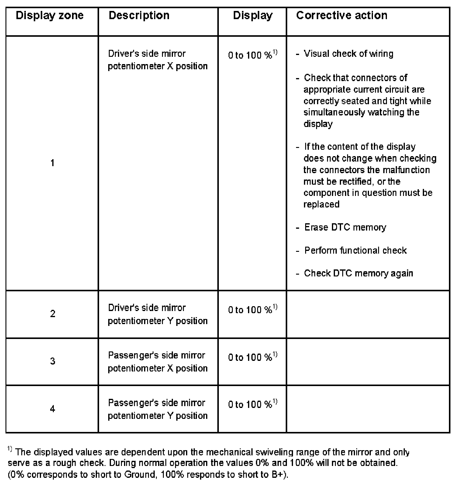 Display Zone 1 - 4:
