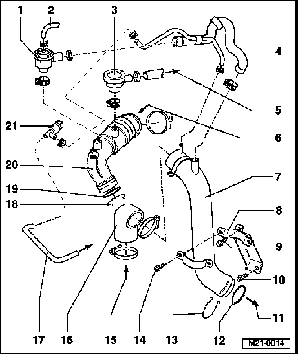 15. from turbocharger/exhaust tube