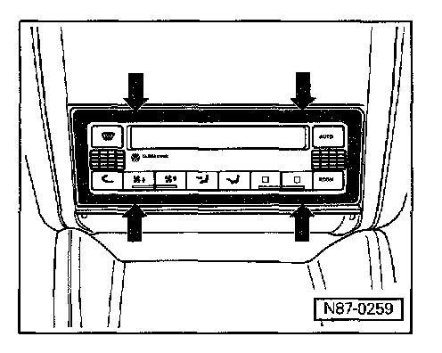 - Using a screwdriver with a protected tip. Carefully unclip control head trim at locations indicated by -arrows-.