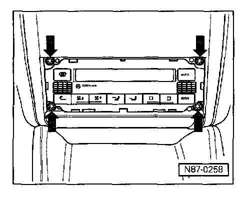 - Climatronic control unit -J255-, A/C control head -E87- and instrument panel temperature sensor -G56- with interior temperature sensor blower -V42- are integrated into a single unit and cannot be serviced separately.