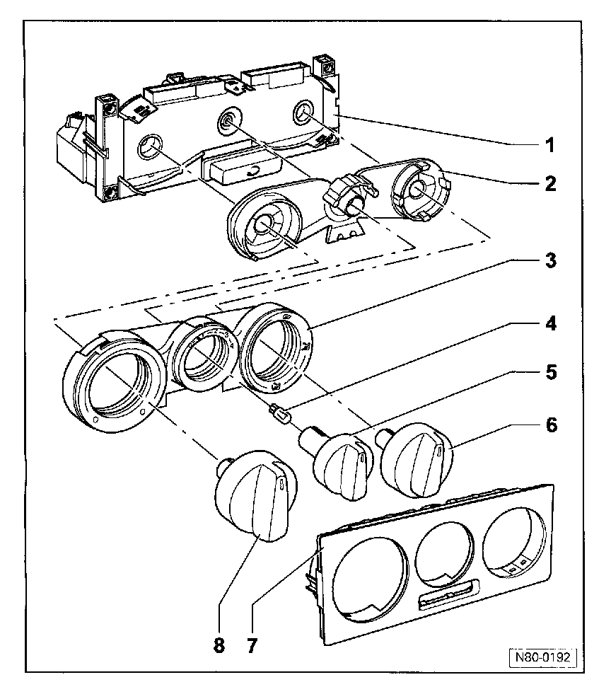 - Unclip trim panel -item 7- and rotary control -item 5-.