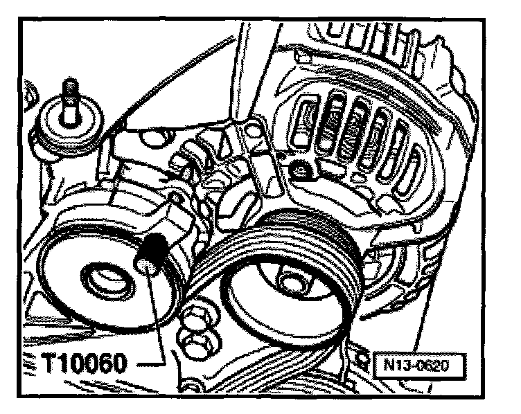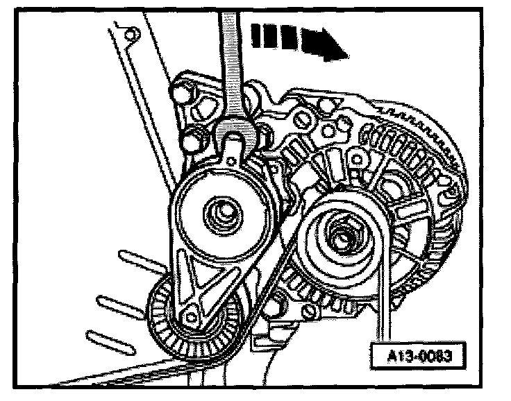 - Before installing the ribbed belt, make sure that all subassemblies (generator, air conditioner compressor, vane pump) are tightly mounted.
