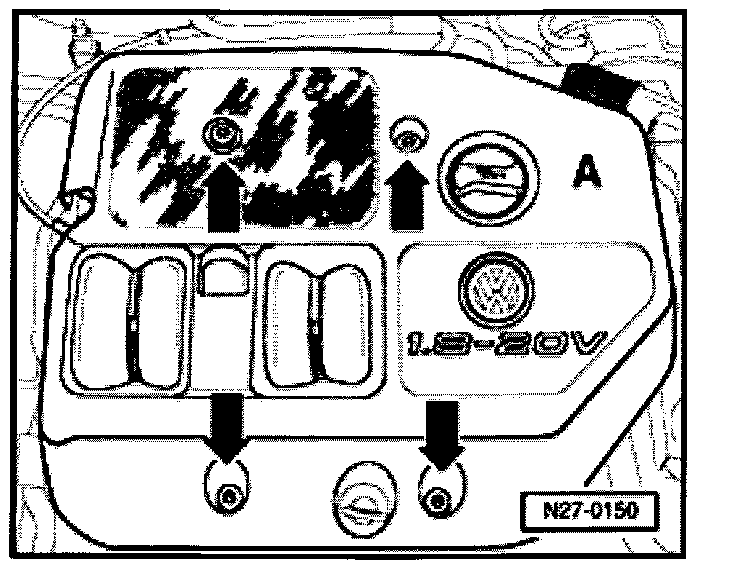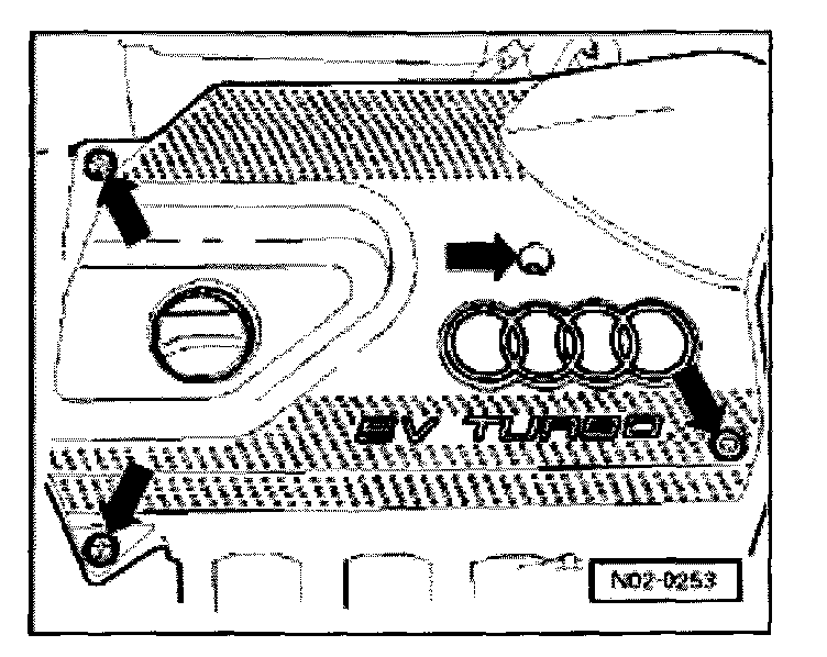 - Loosen screws -arrows- and lift engine cover from engine.