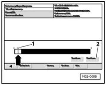 - Move the position indicator -arrow- on the display to the left, until 0 is shown above the scroll bar -1-.