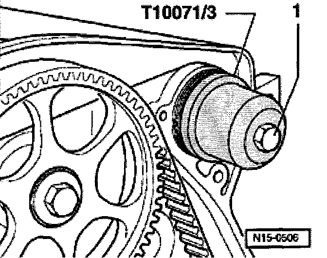 - Loosen knurled screw and turn inner part of extractor against camshaft until oil seal has been extracted.
