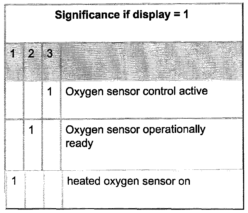 - The first position of the 3 digit number block fluctuates between 0 and 1 (heated oxygen sensor on and off).