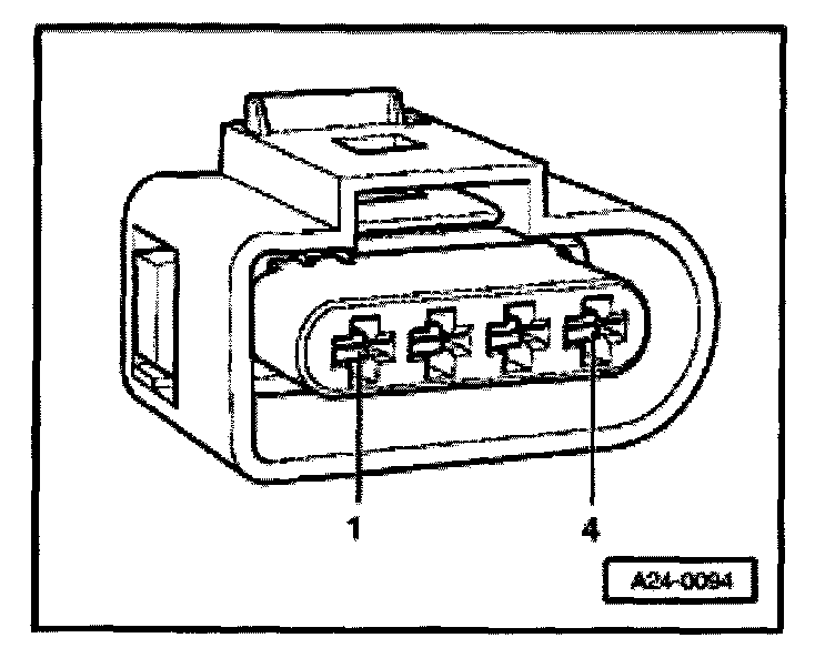 - Connect multimeter with aux. cables from VAG 1594 to measure voltage at contacts 3 + 4 (connector to Motronic control module).