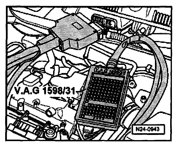 - Connect test box VAG 1598/31 to control module wiring harness. The engine control module remains disconnected.