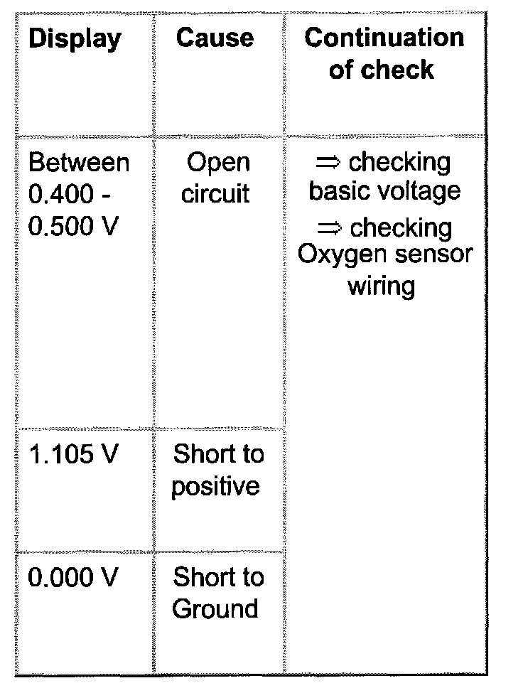- Check Oxygen sensor control learned values at idling speed (additive) in display zone 1.