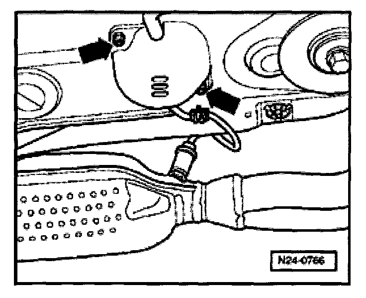 - Remove protective cover -arrows- and separate 4 pin connector (black) to Oxygen sensor before catalyst (G39).