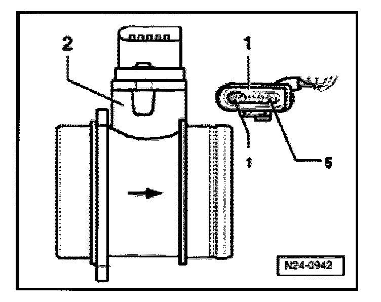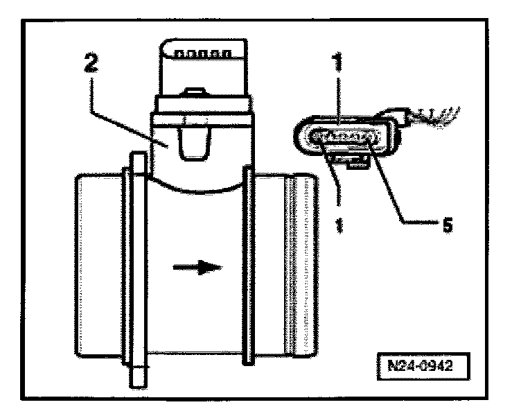 - Pull 5 pin connector -1- off Mass Air Flow (MAF) sensor -2-.