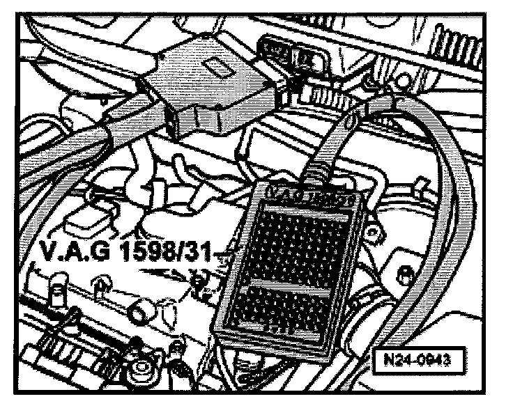 - Connect test box VAG 1598/31 to control module wiring harness. The engine control module remains disconnected.