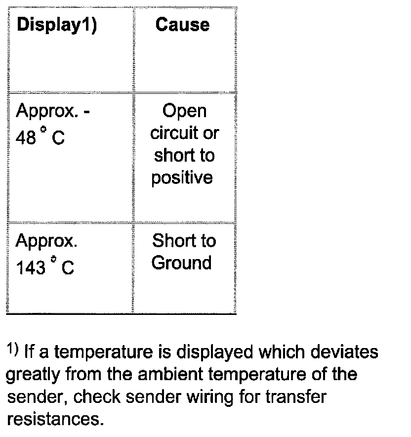 - If irregular engine running occurs in certain temperature ranges and the temperature figure does not increase without interruption, the temperature signal is temporarily interrupted and the sender must be replaced.