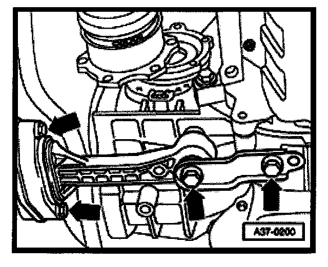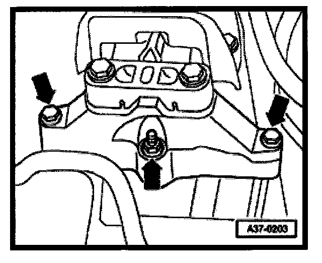 - When transmission has been securely supported, remove bolts for transmission carrier (arrows).