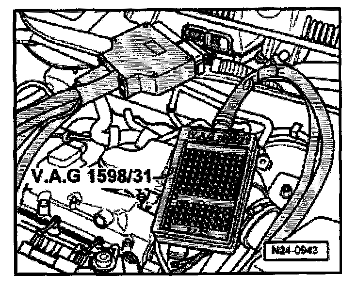 - Connect test box VAG 1598/31 to control module wiring harness. The engine control module remains disconnected.