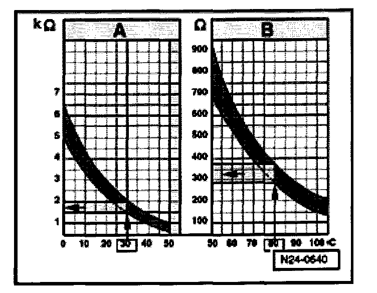 - 30 °C is in range A and corresponds to a resistance of 1.5 - 2.0 kohms