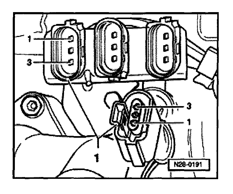 - Separate 3 pin connector to knock sensor 1 (G61) -1-.