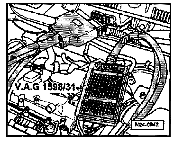 - Connect test box VAG 1598/31 to control module wiring harness. The engine control module remains disconnected.
