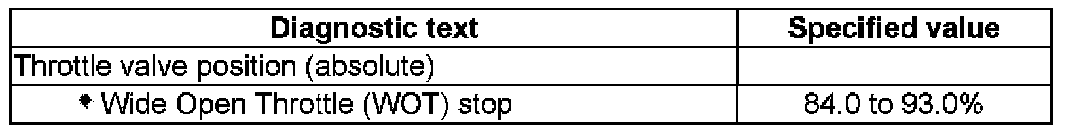 - Using the scan tool, check the throttle valve position (absolute) at Wide Open Throttle (WOT) stop: