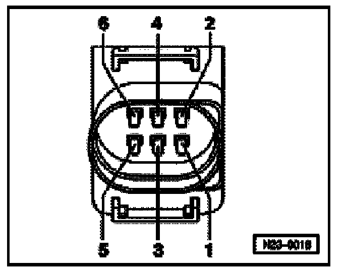 - Using a Multimeter , check the Throttle Drive (for Electronic Power Control (EPC)) G186 at the Throttle Valve Control Module J338 electrical harness connector terminals 2 to 6 for voltage.