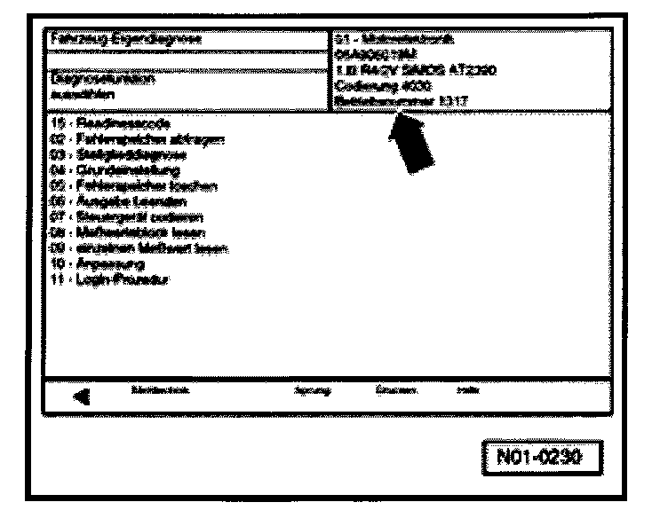 Display will indicate the control module identification and the coding, e.g.: