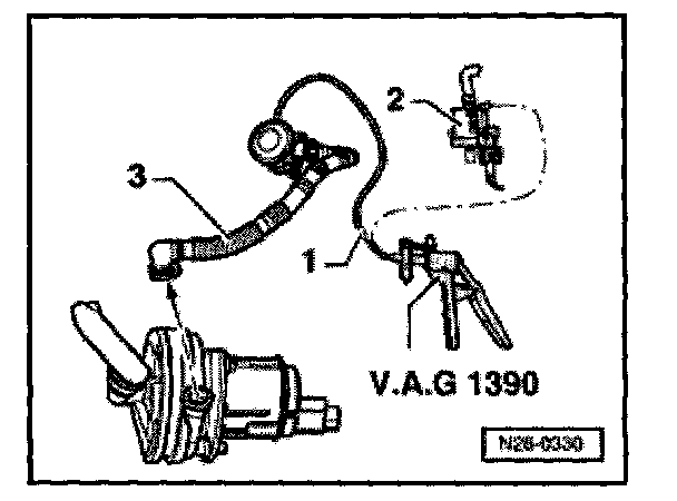 - Connect VAG 1390 vacuum pump to vacuum hose -1-.