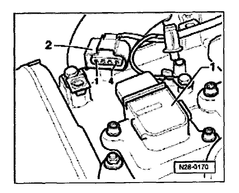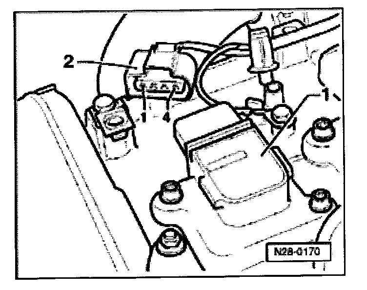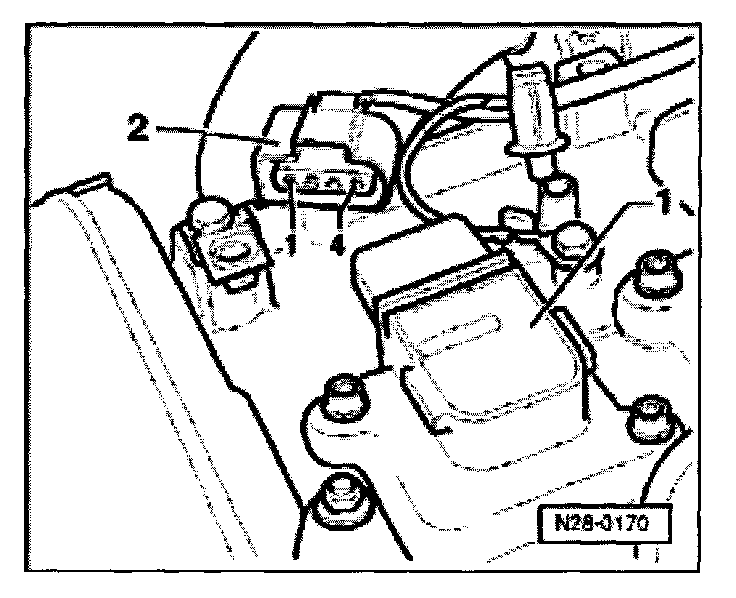 - Pull 4 pin connector -2- off ignition coil to be checked -1-.