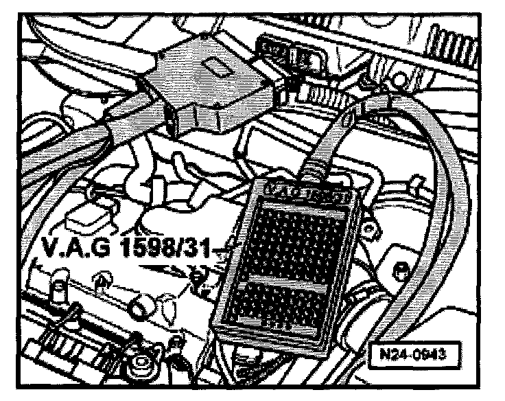 - Connect test box VAG 1598/31 to control module wiring harness. The engine control module remains disconnected.