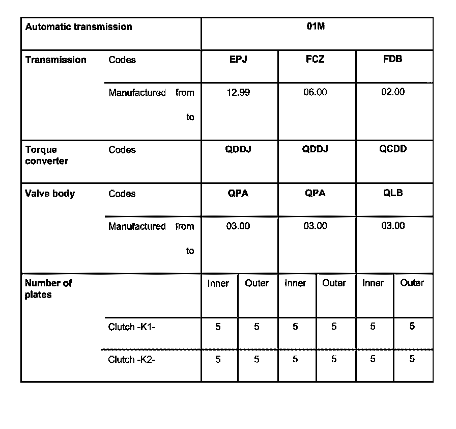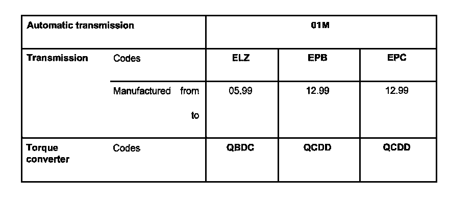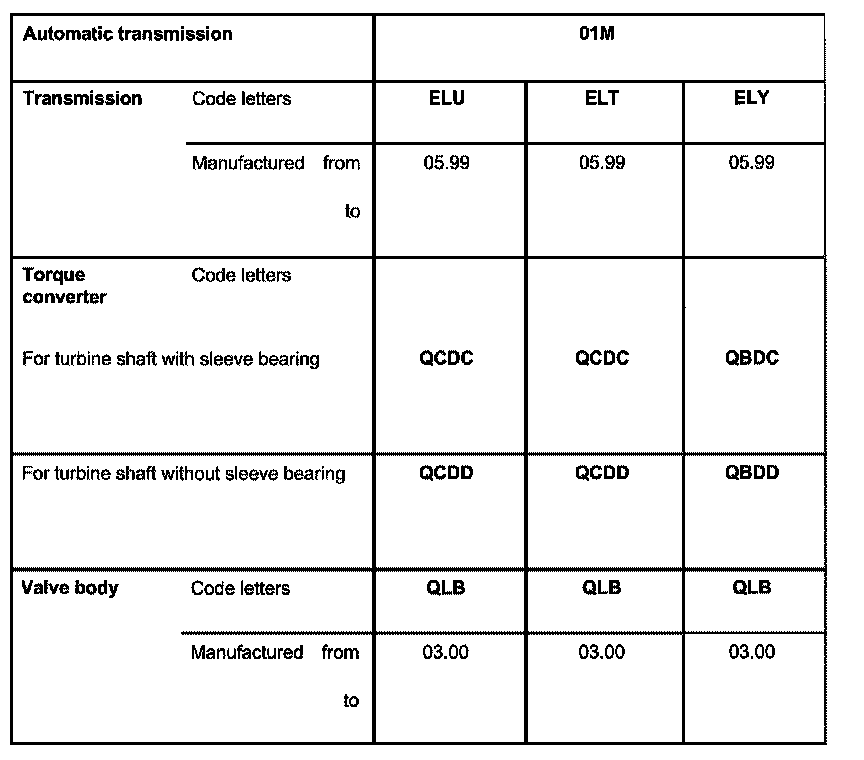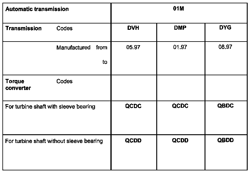 The 4-speed automatic transmission 01M is installed in the Golf and Jetta from 1999 in combination with a 4 or 6-cylinder engine.