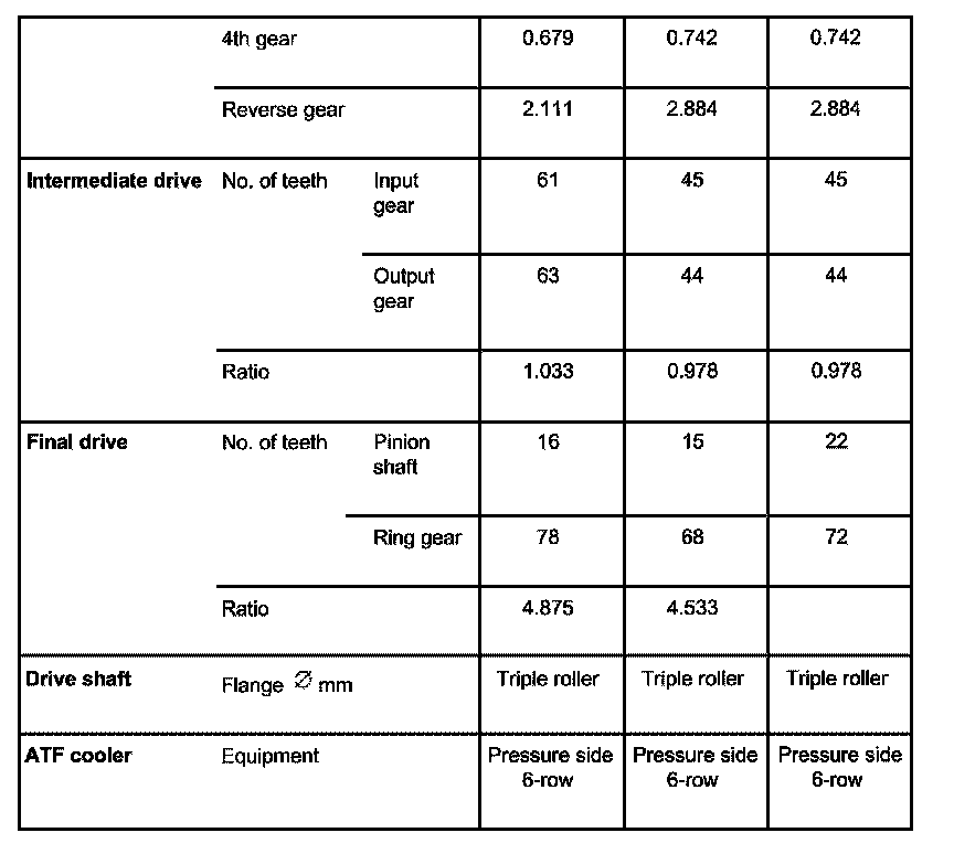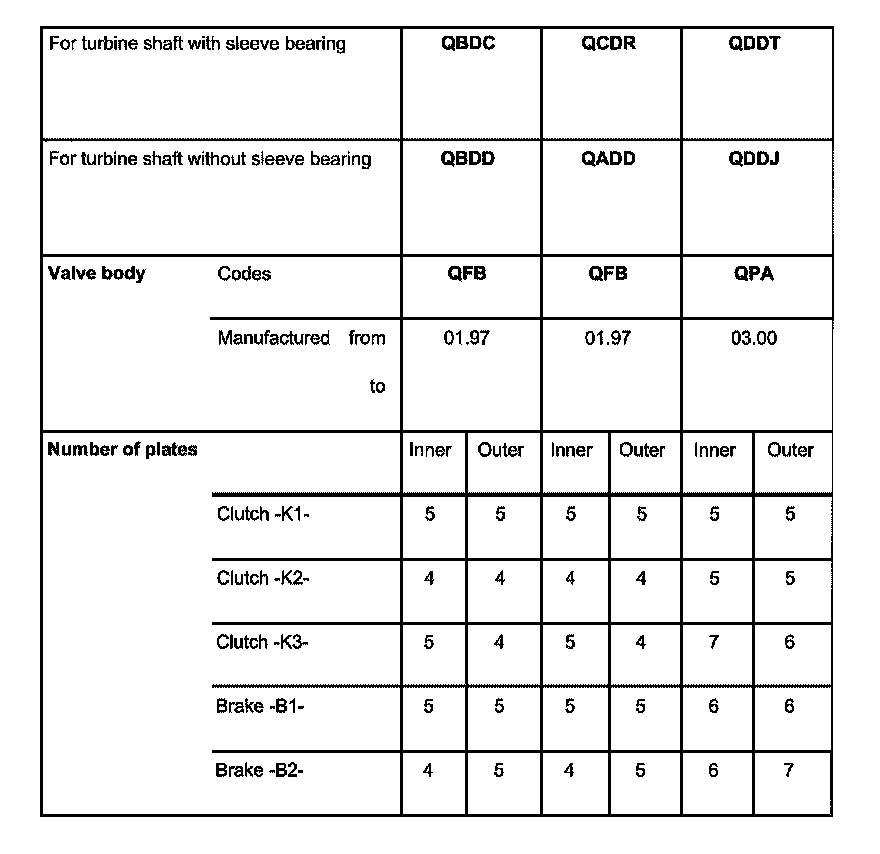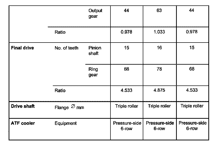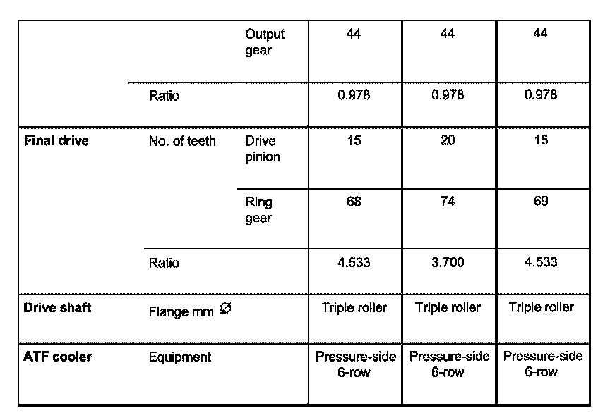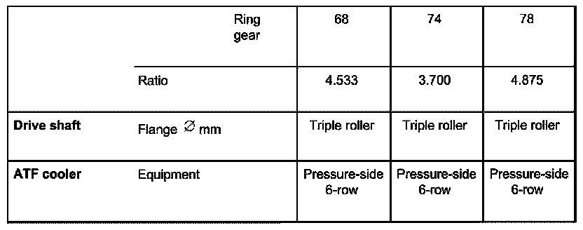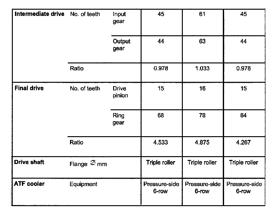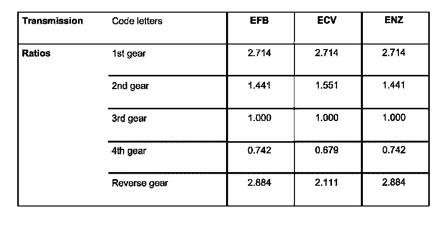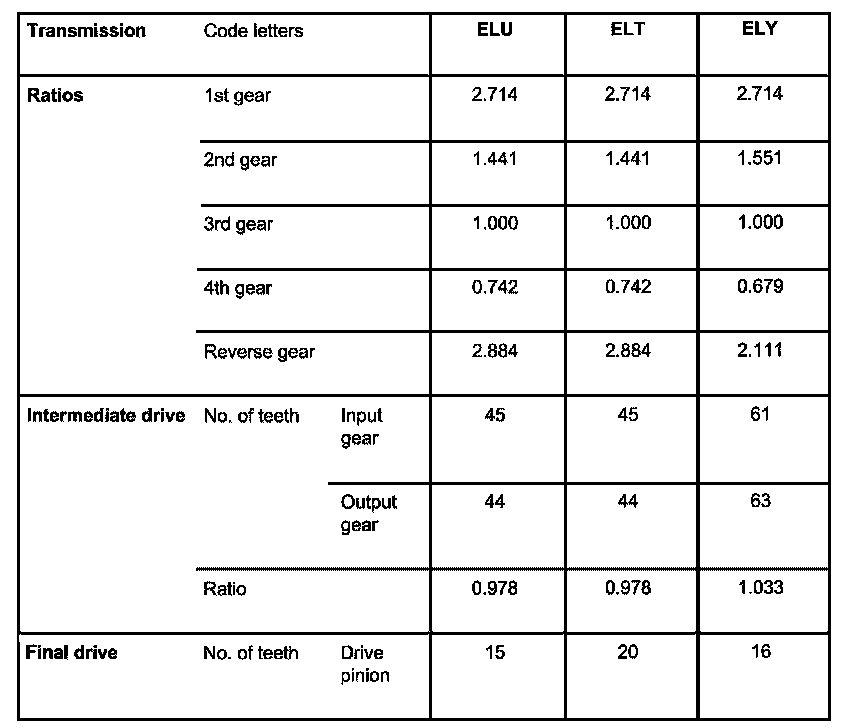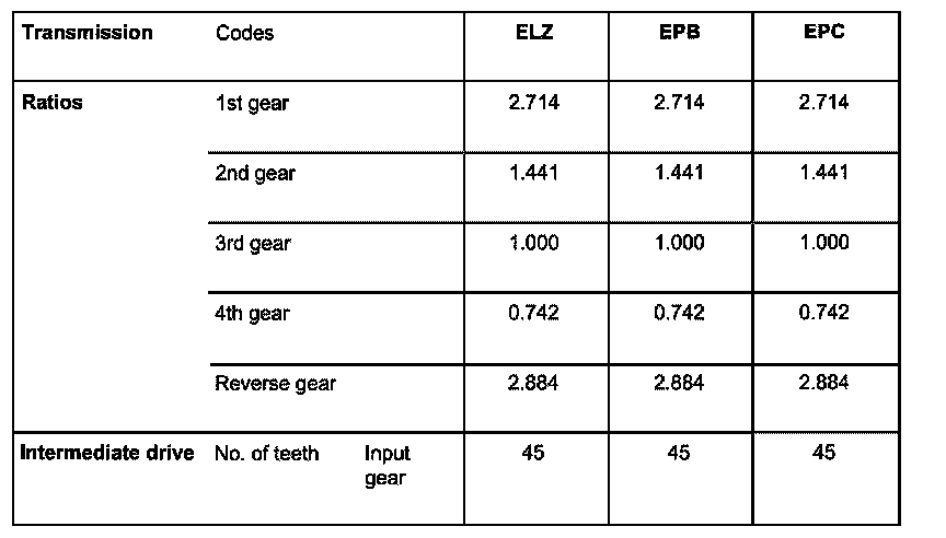 Code letters, transmission allocation, ratios, equipment (ELZ, EPB, EPC Transmissions)