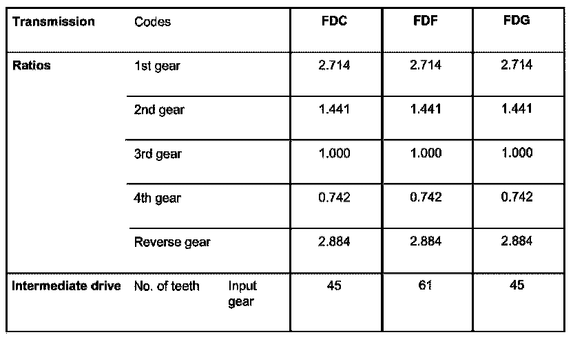 Code letters, transmission allocation, ratios, equipment (FDC, FDF, FDG Transmissions)