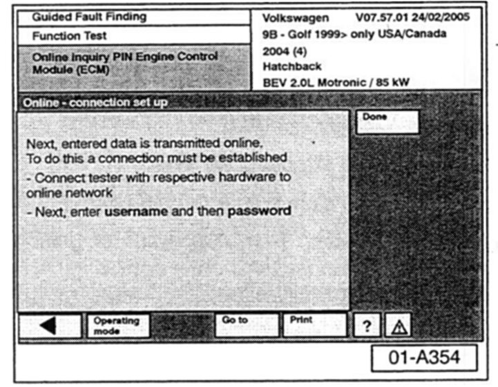 ^ The online GeKo process resolves the issue with 7-digit PIN codes beginning with "0" in Adaptation Channel 50 not being accepted by the Immobilizer when this code is entered into the Engine Control Module or Instrument Cluster (as described in VW Technical Bulletin Group 01 Number 04-21).