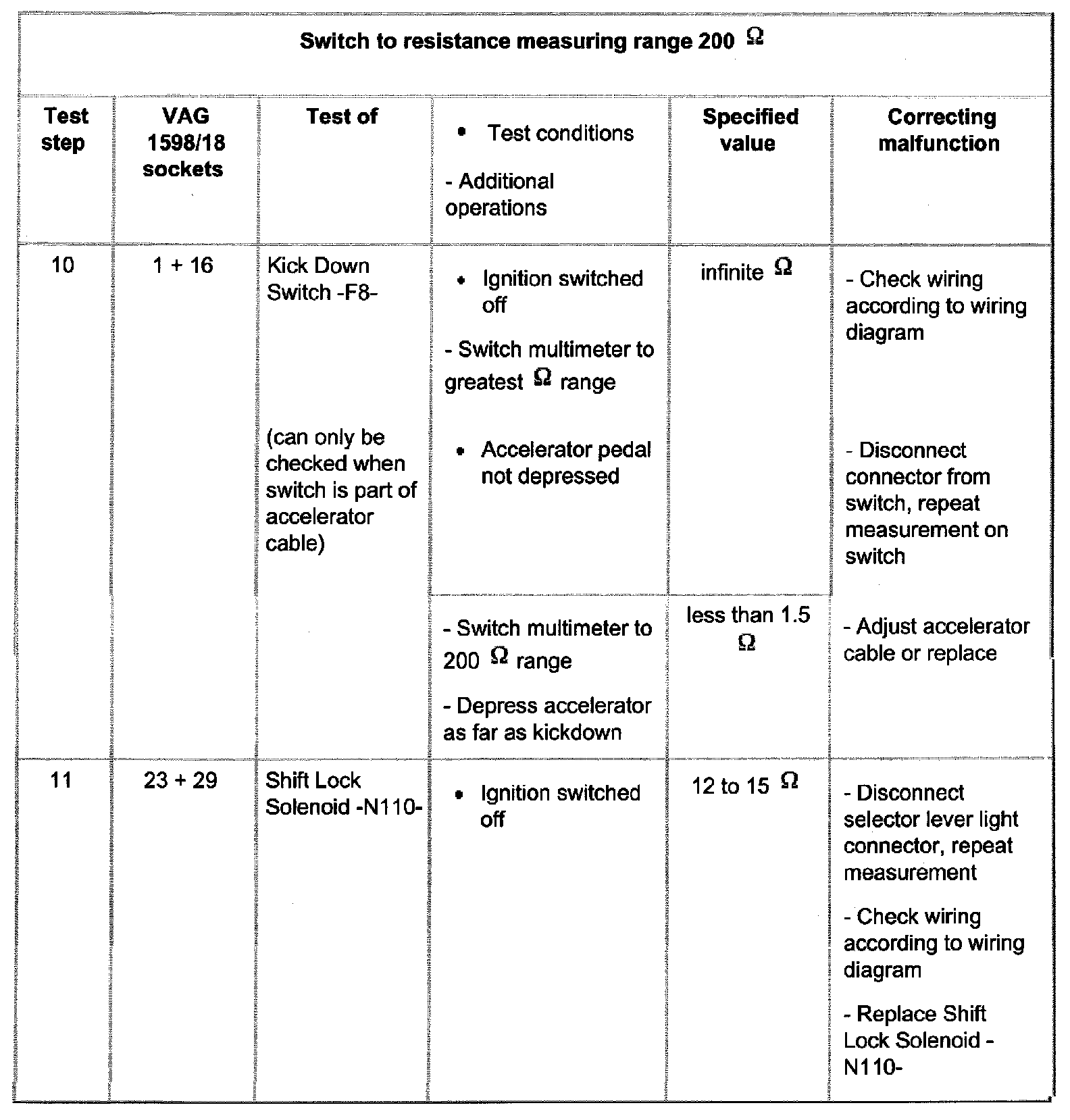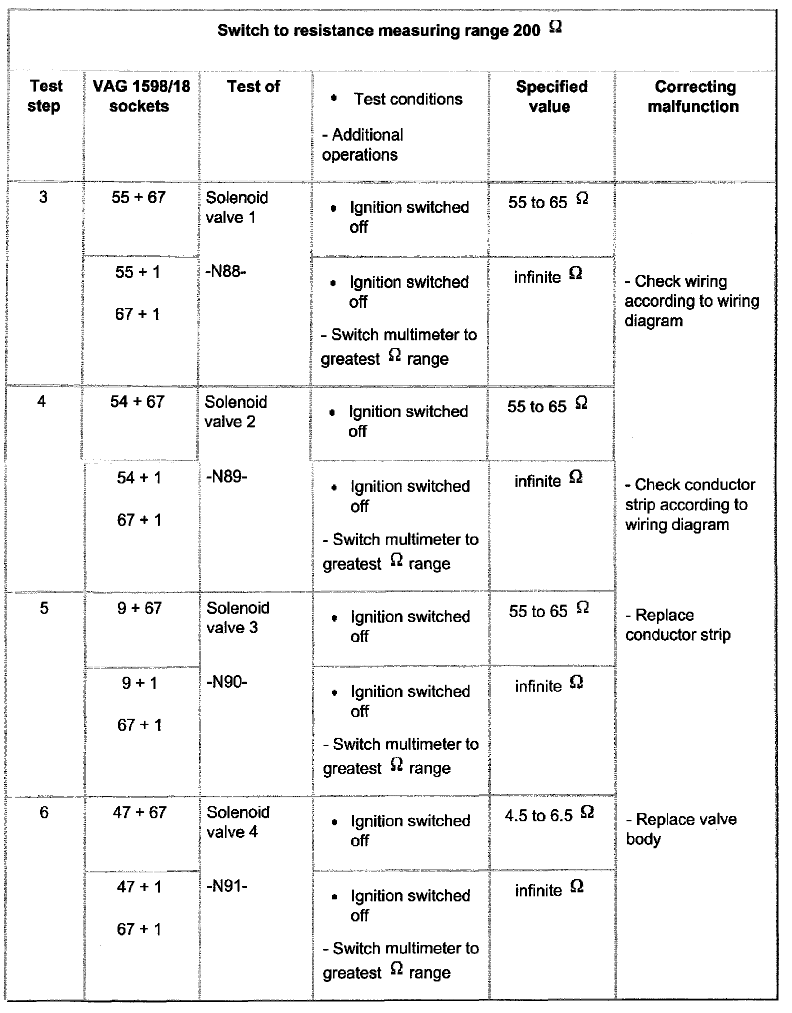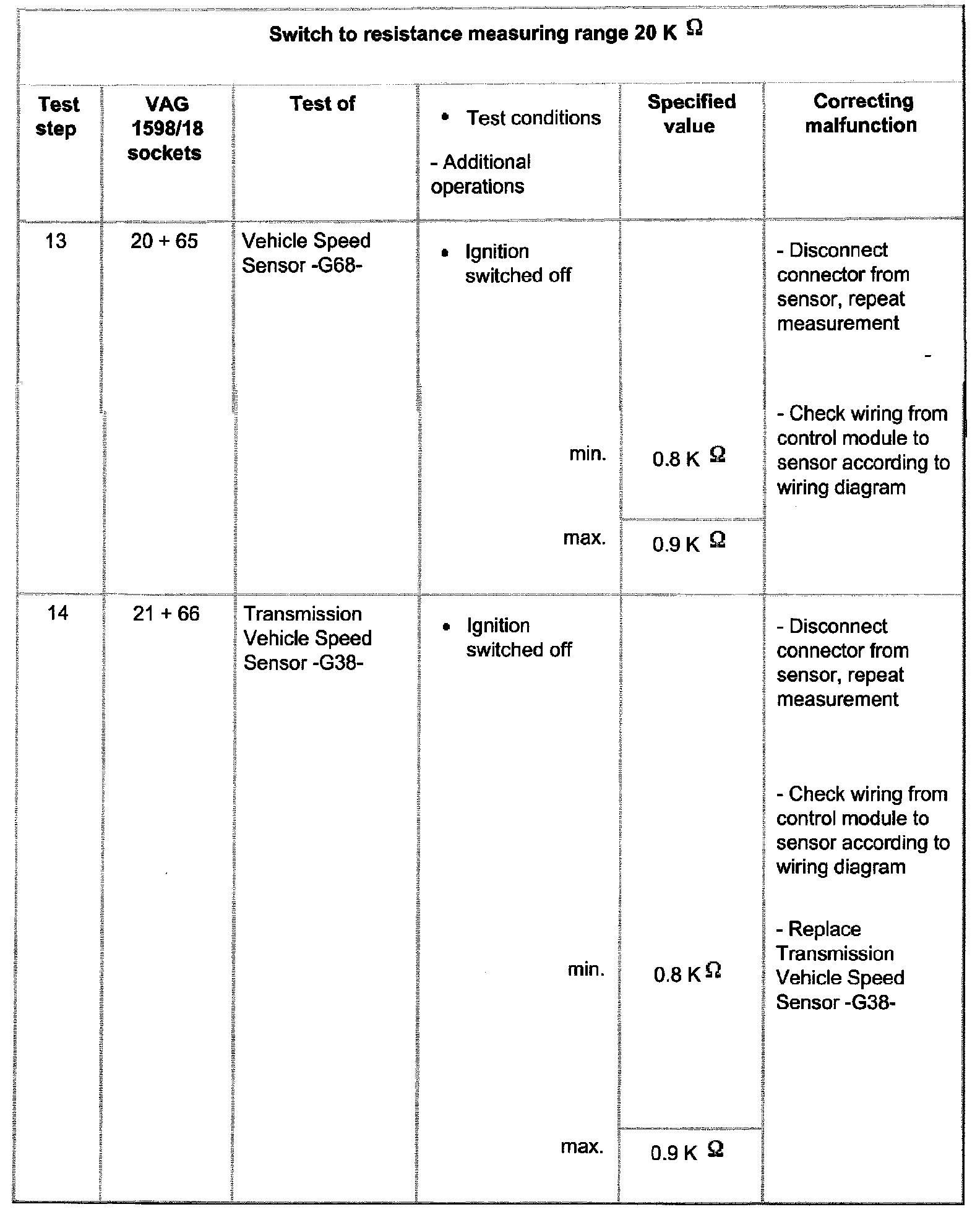 - If measured values differ only slightly from the specified values, clean the sockets and connectors of the testers and test leads and repeat the test. Before replacing the particular components, test wiring and connections and, particularly if specified values are below 10 Ohms, repeat resistance measurement on the component.