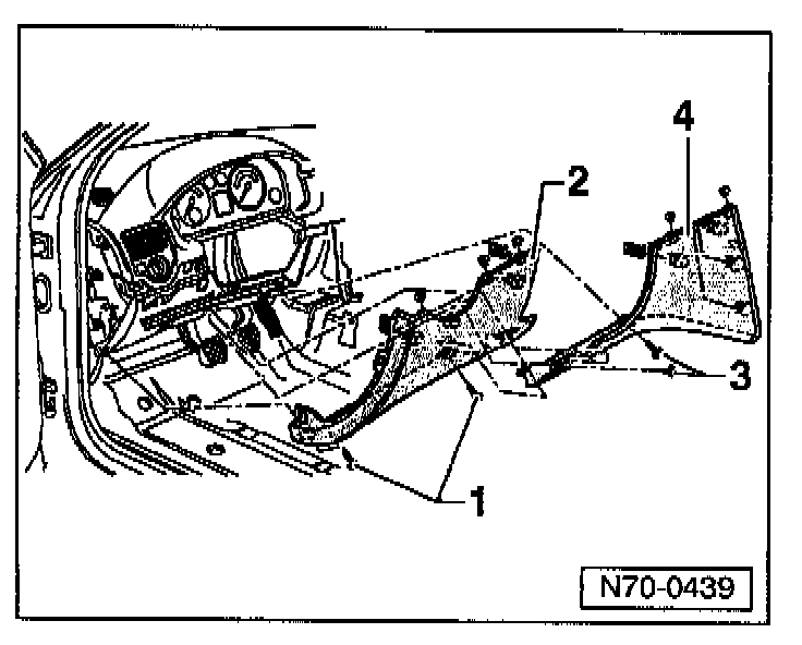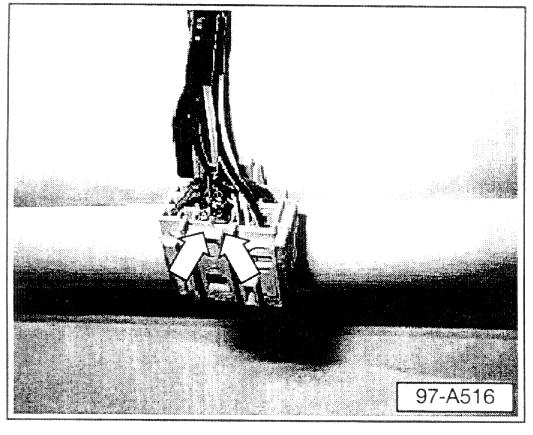 - Route antenna along body cross member and attach using two plastic tie straps (arrows) Part No: N 020 902 2 to the two bands around the cross member as shown.