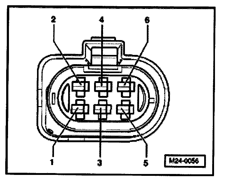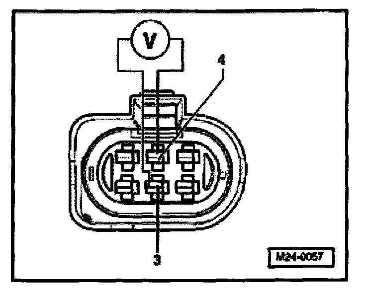 - Connect multimeter using aux. cables from VW1594 to measure voltage at terminals -3- and -4- (harness connector to Engine Control Module (ECM)).